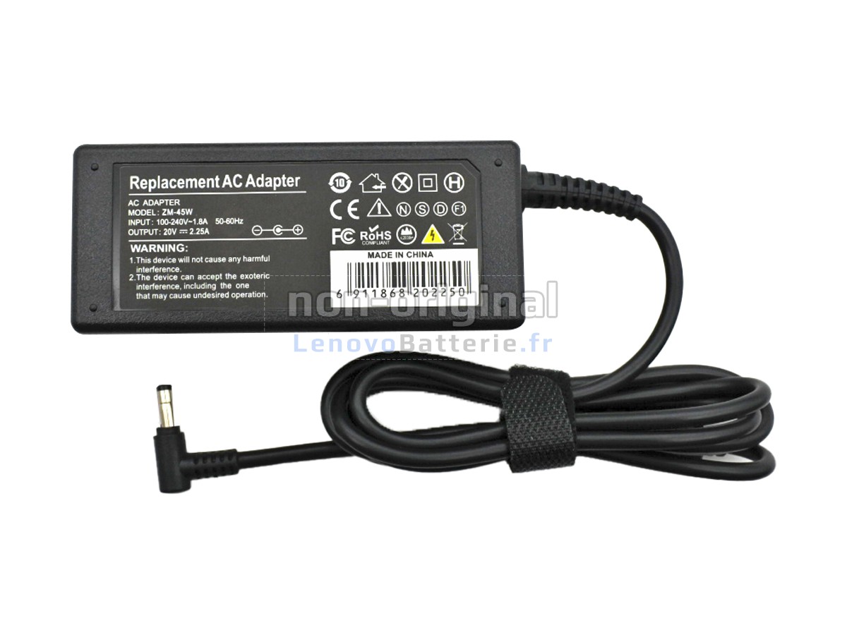 Cet chargeur pour Lenovo 20V 2.25A 45W 4.0*1.7MM est entièrement conforme aux spécifications du fabricant d'origine, assurant une compatibilité à 100 % avec votre ordinateur portable Lenovo. Il offre une performance équivalente, voire supérieure, à celle de l'adaptateur original, pour une expérience utilisateur optimale.