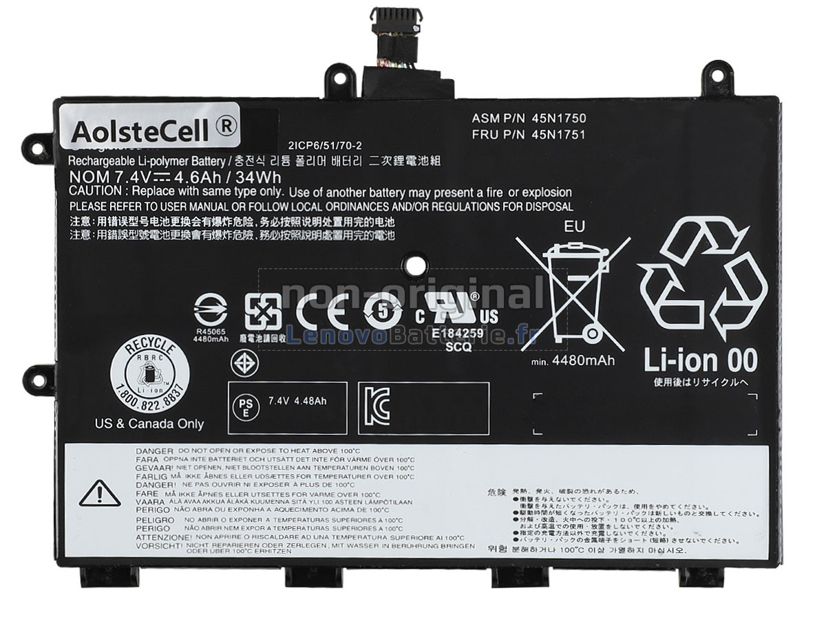 Cette batterie de rechange Lenovo 45N1749 correspond aux spécifications du fabricant d'origine, et elle est 100% compatible avec votre ordinateur portable Lenovo, elle a les mêmes performances et vous donne la même expérience d'utilisation, ou voire mieux par rapport à la batterie 45N1749 d'origine.