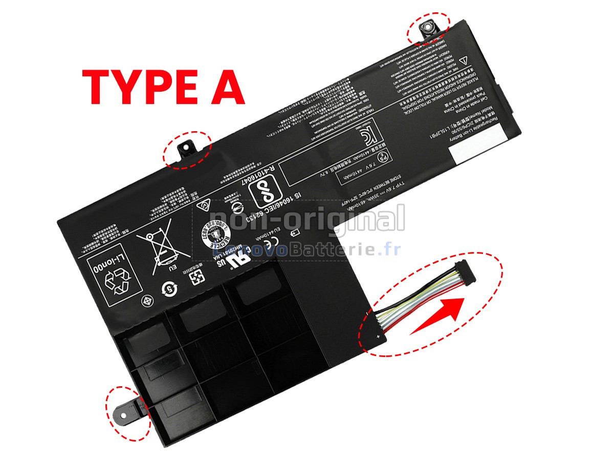 2Comparez la tension et la capacité de votre batterie avec notre batterie 5B10M50528, et vérifiez que le connecteur et la forme de la batterie sont identiques à ceux illustrés sur notre site web.
