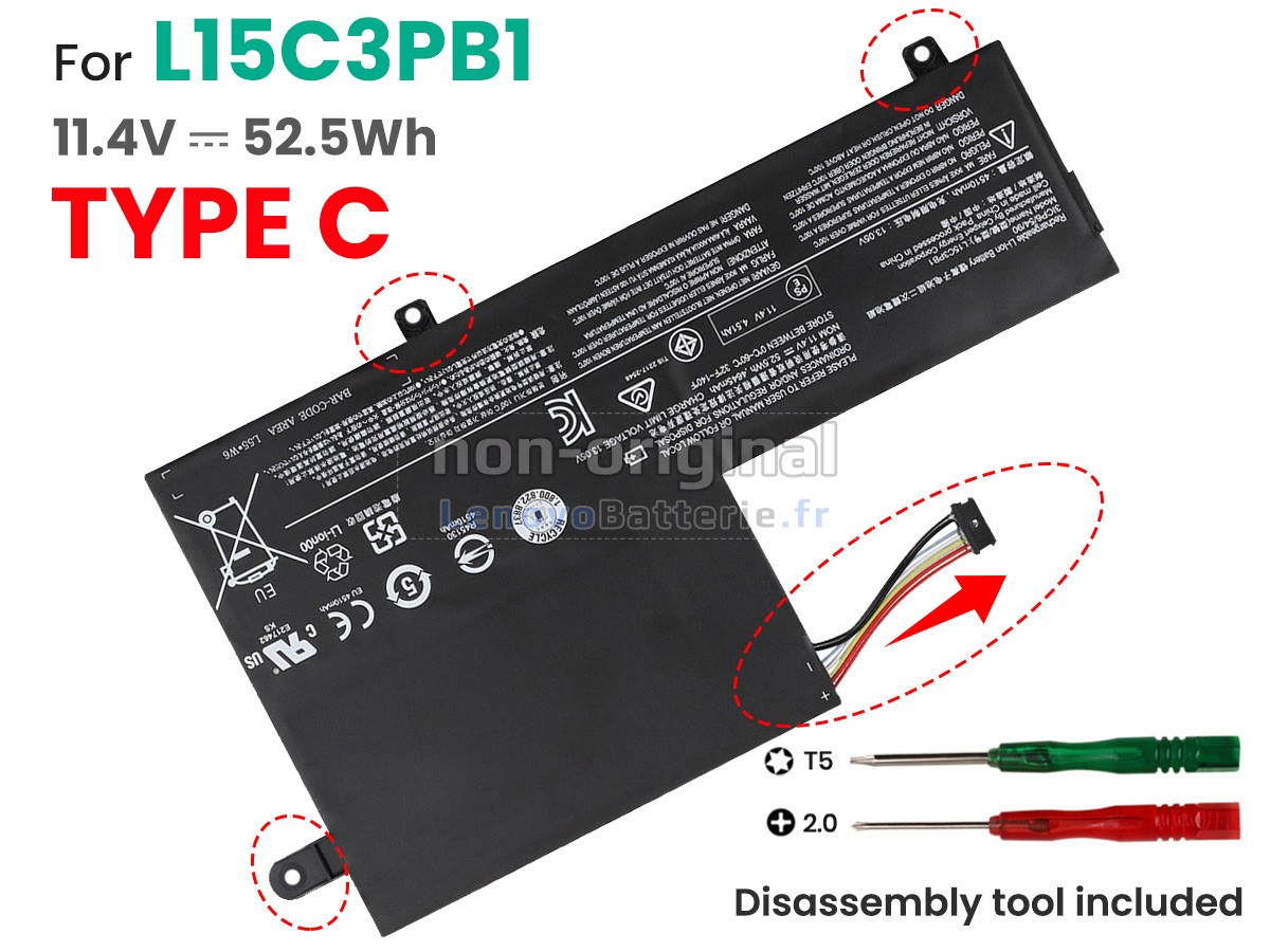 Cette batterie de rechange Lenovo 5B10M50528 correspond aux spécifications du fabricant d'origine, et elle est 100% compatible avec votre ordinateur portable Lenovo, elle a les mêmes performances et vous donne la même expérience d'utilisation, ou voire mieux par rapport à la batterie 5B10M50528 d'origine.