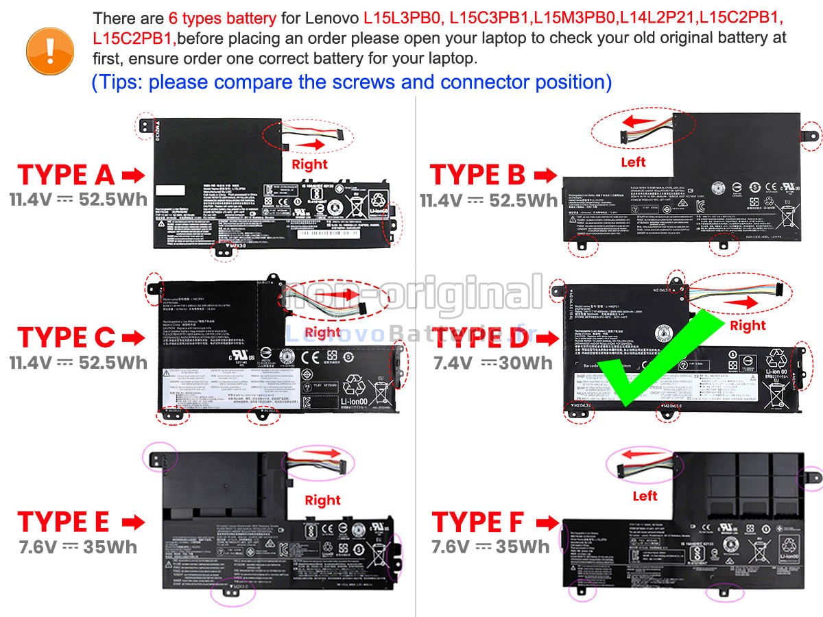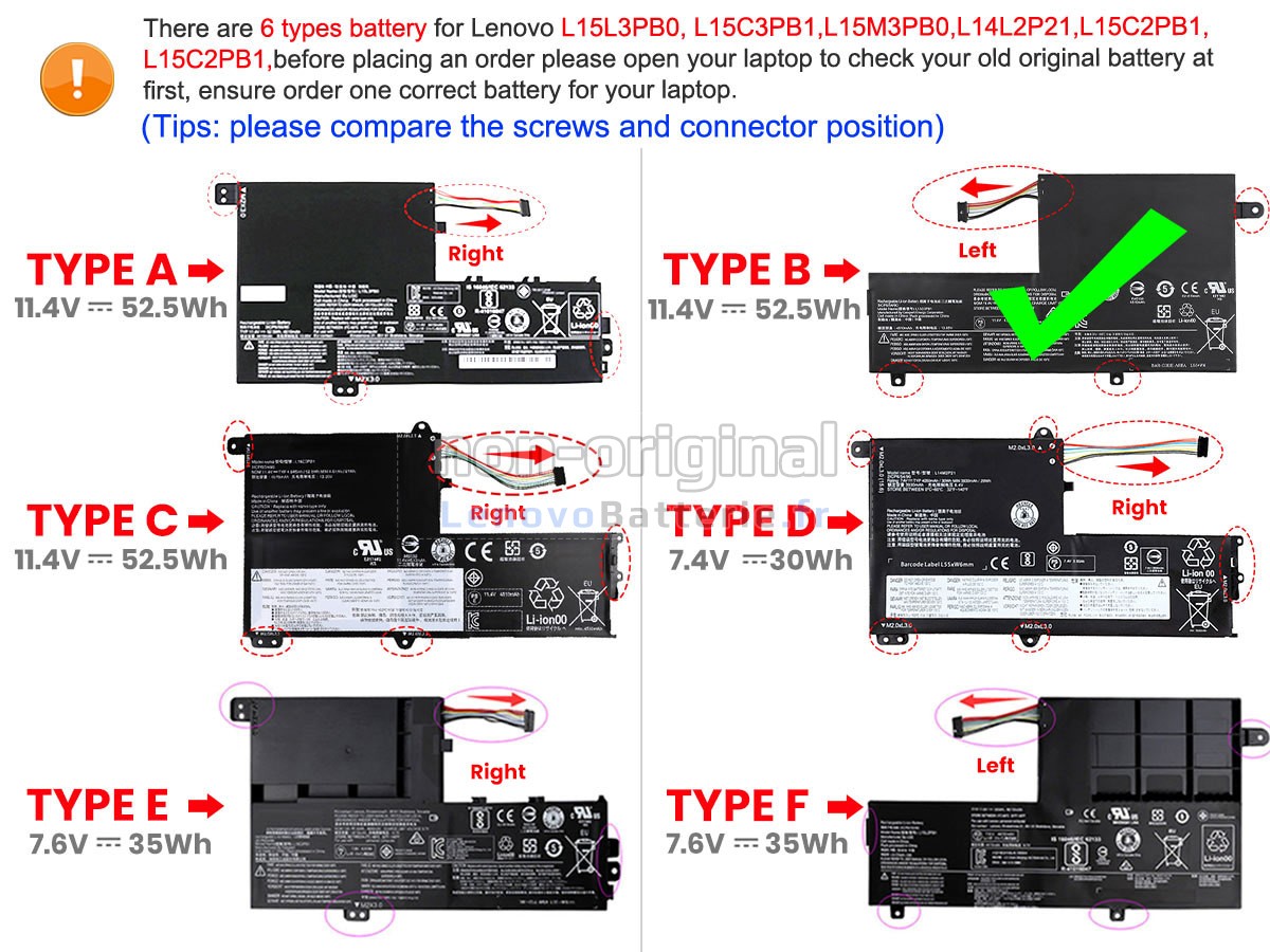 Before placing an order, please open your laptop to check your old battery first, ensure the screws and connector position is same as ours.