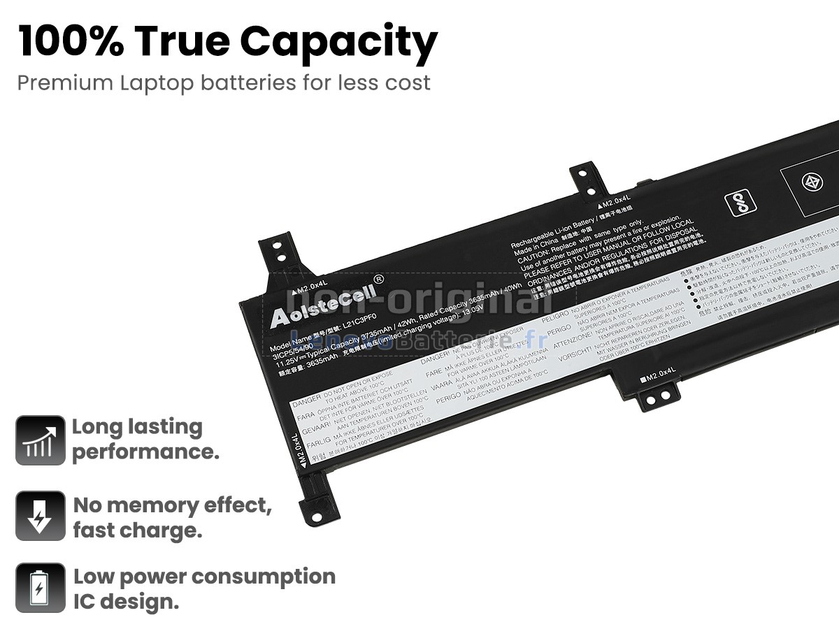 Cette batterie de rechange Lenovo IdeaPad 1 15AMN7-82VG00MHFG correspond aux spécifications du fabricant d'origine, et elle est 100% compatible avec votre ordinateur portable Lenovo, elle a les mêmes performances et vous donne la même expérience d'utilisation, ou voire mieux par rapport à la batterie IdeaPad 1 15AMN7-82VG00MHFG d'origine.