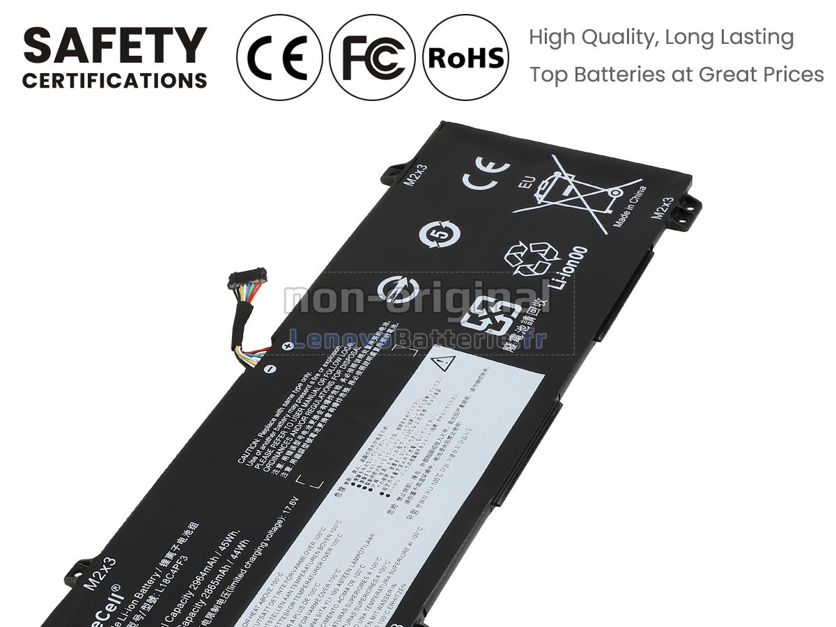 Toutes les batteries Lenovo IdeaPad C340-14IWL-81N400P4UE sont certifiées par NF, CE et UL, et elles sont conformes aux normes françaises et européennes. De plus, elles sont contrôlées avec une série de tests rigoureux avant la sortie d'usine, pour garantir votre sécurité !