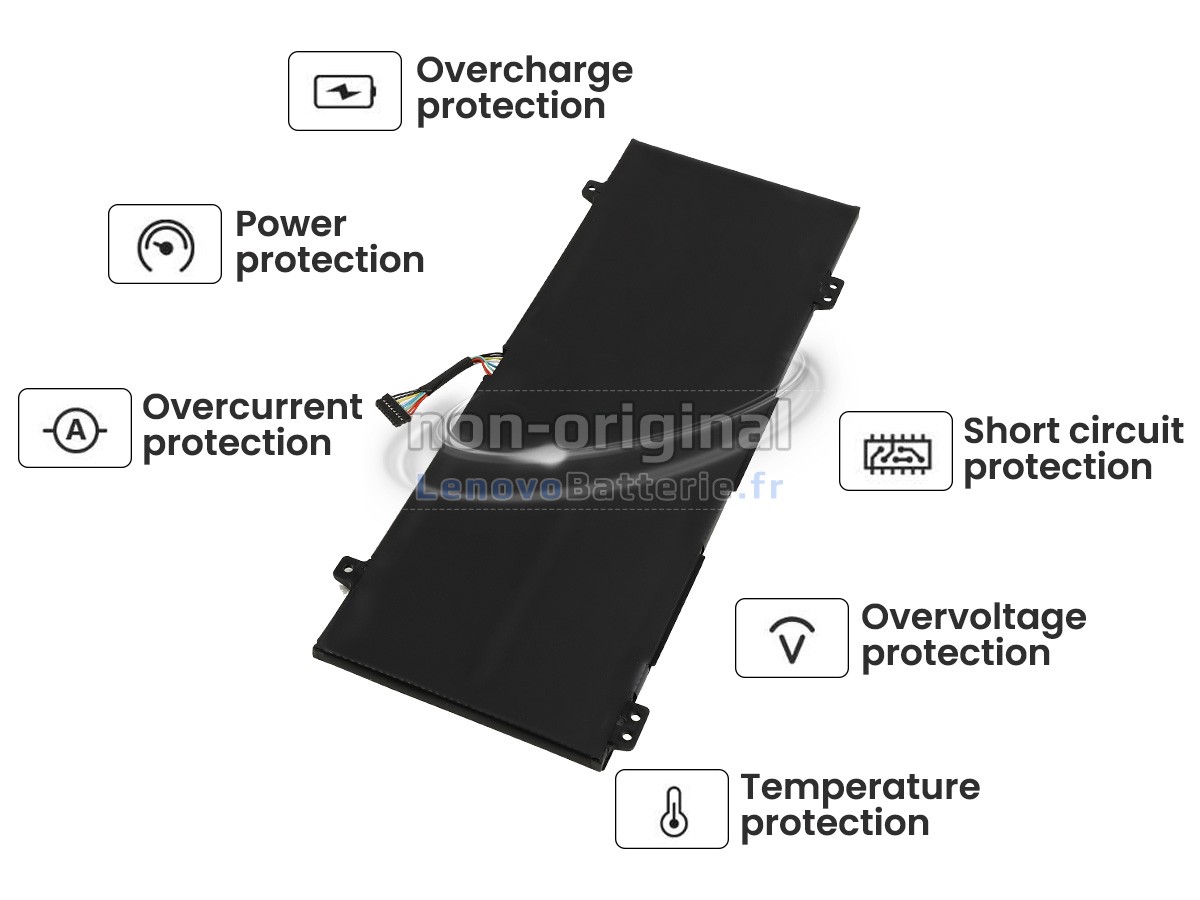 Chaque batterie pour PC portable Lenovo IdeaPad C340-14IWL-81N400P4UE est équipée des cellules au lithium-ion de qualité A+ de Samsung, Panasonic et LG, d'une carte de circuit imprimé intelligente avec puce et d'un boîtier ABS+PC écologique, résistant aux températures élevées et à l'usure. Ce qui garantit des performances à la fois la sécurité.