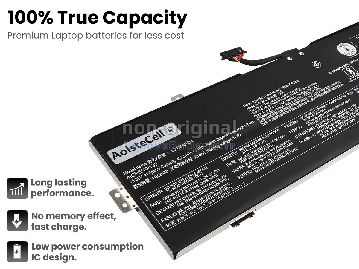 Chaque batterie pour PC portable Lenovo IdeaPad GAMING 3 16ARH7-82SC004VPB est équipée des cellules au lithium-ion de qualité A+ de Samsung, Panasonic et LG, d'une carte de circuit imprimé intelligente avec puce et d'un boîtier ABS+PC écologique, résistant aux températures élevées et à l'usure. Ce qui garantit des performances à la fois la sécurité.