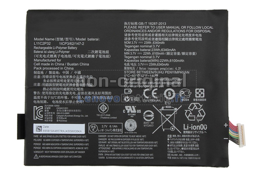 Toutes les batteries Lenovo IDEATAB A7600-F sont certifiées par NF, CE et UL, et elles sont conformes aux normes françaises et européennes. De plus, elles sont contrôlées avec une série de tests rigoureux avant la sortie d'usine, pour garantir votre sécurité !