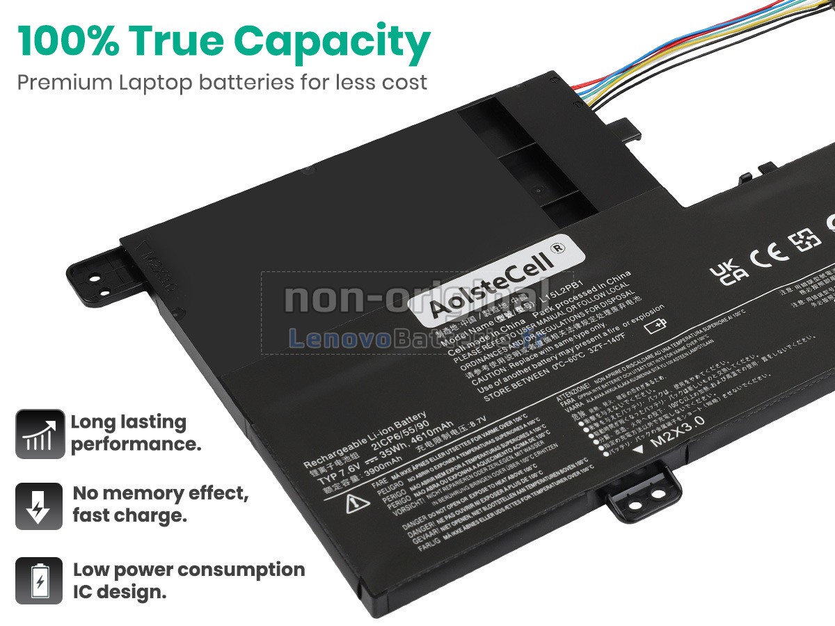 Chaque batterie pour PC portable Lenovo L15L2PB1 est équipée des cellules au lithium-ion de qualité A+ de Samsung, Panasonic et LG, d'une carte de circuit imprimé intelligente avec puce et d'un boîtier ABS+PC écologique, résistant aux températures élevées et à l'usure. Ce qui garantit des performances à la fois la sécurité.