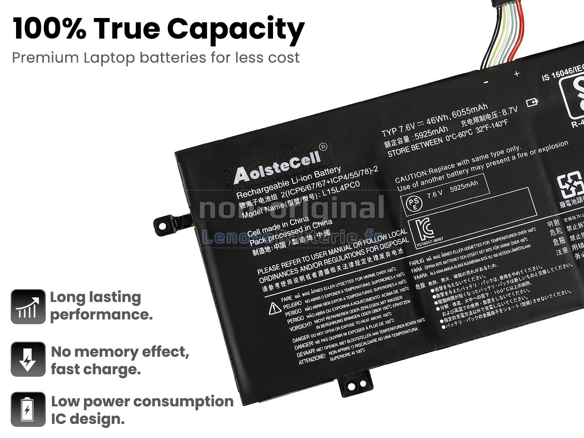 Chaque batterie pour PC portable Lenovo L15S4PC0 est équipée des cellules au lithium-ion de qualité A+ de Samsung, Panasonic et LG, d'une carte de circuit imprimé intelligente avec puce et d'un boîtier ABS+PC écologique, résistant aux températures élevées et à l'usure. Ce qui garantit des performances à la fois la sécurité.