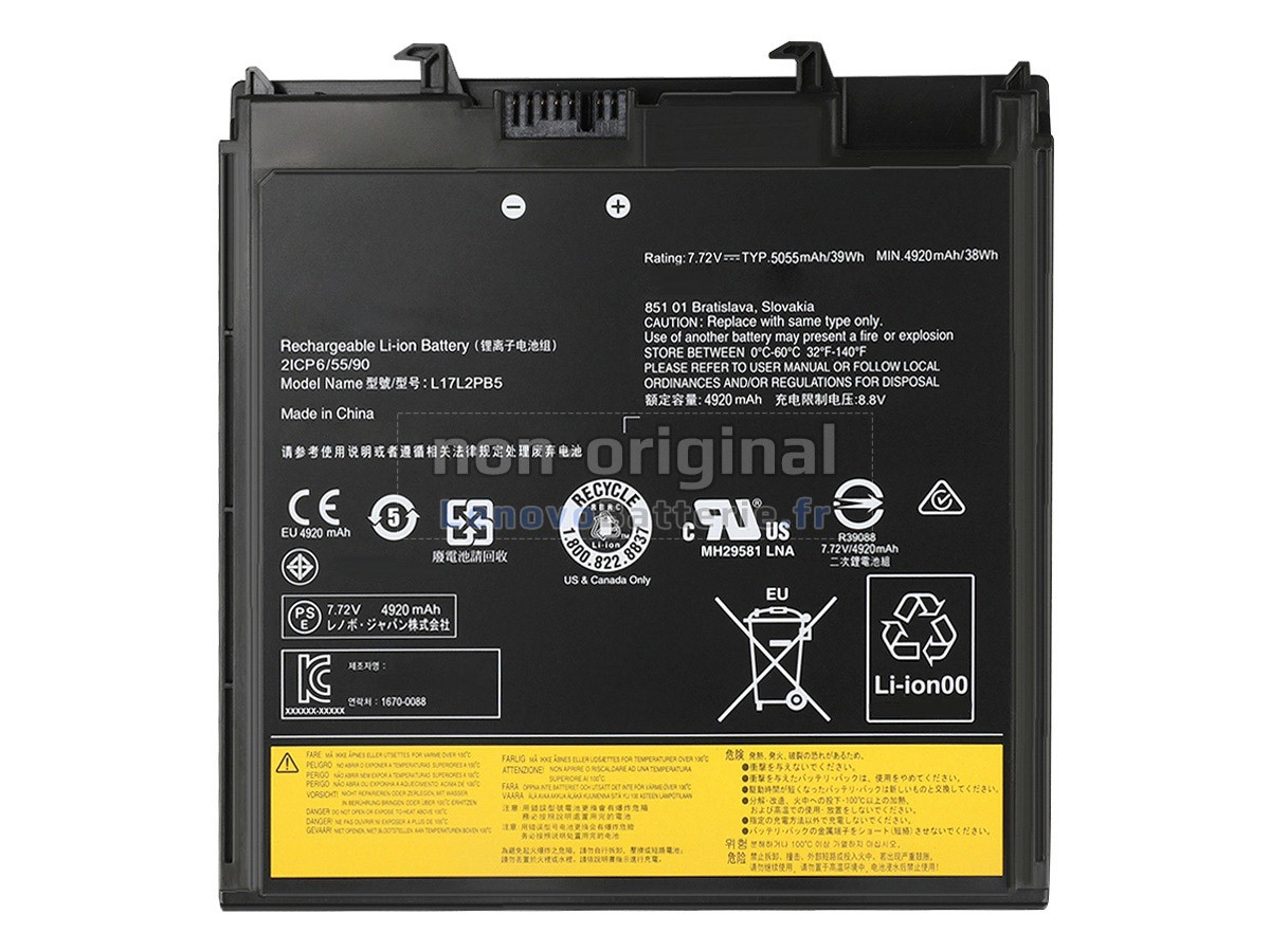 Toutes les batteries Lenovo L17L2PB2(2ICP6/55/90) sont certifiées par NF, CE et UL, et elles sont conformes aux normes françaises et européennes. De plus, elles sont contrôlées avec une série de tests rigoureux avant la sortie d'usine, pour garantir votre sécurité !