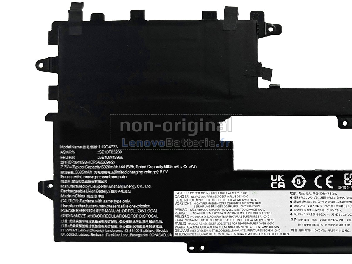 Toutes les batteries Lenovo L19C4P74 sont certifiées par NF, CE et UL, et elles sont conformes aux normes françaises et européennes. De plus, elles sont contrôlées avec une série de tests rigoureux avant la sortie d'usine, pour garantir votre sécurité !