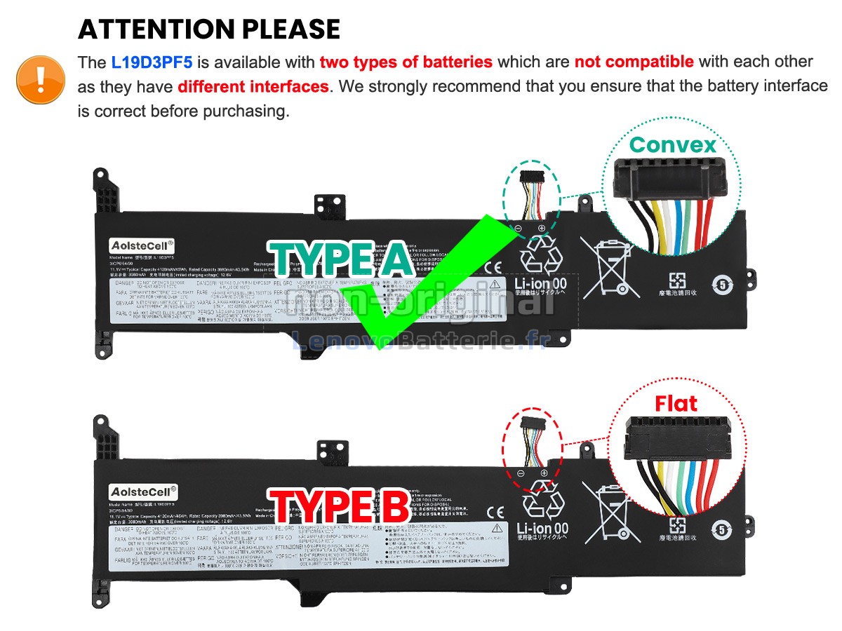 Toutes les batteries vendues sur LenovoBatterie.fr sont de nouvelles batteries de rechange, au lieu des batteries originales. En fait, nous utilisons les cellules et les puces intelligentes d'origine de la grande marque pour fabriquer les batteries de rechange, qui ont presque les mêmes performances, voire meilleures que les batteries d'origine. Comme ça, les primes de la marque seront supprimées mais sans compromettre la qualité. En outre, les batteries Lenovo L19D3PF5 d'origine sont faites de différents accessoires de tiers, uniquement avec un logo de marque. Sur LenovoBatterie.fr, vous pouvez obtenir des batteries avec meilleur rapport qualité-prix !