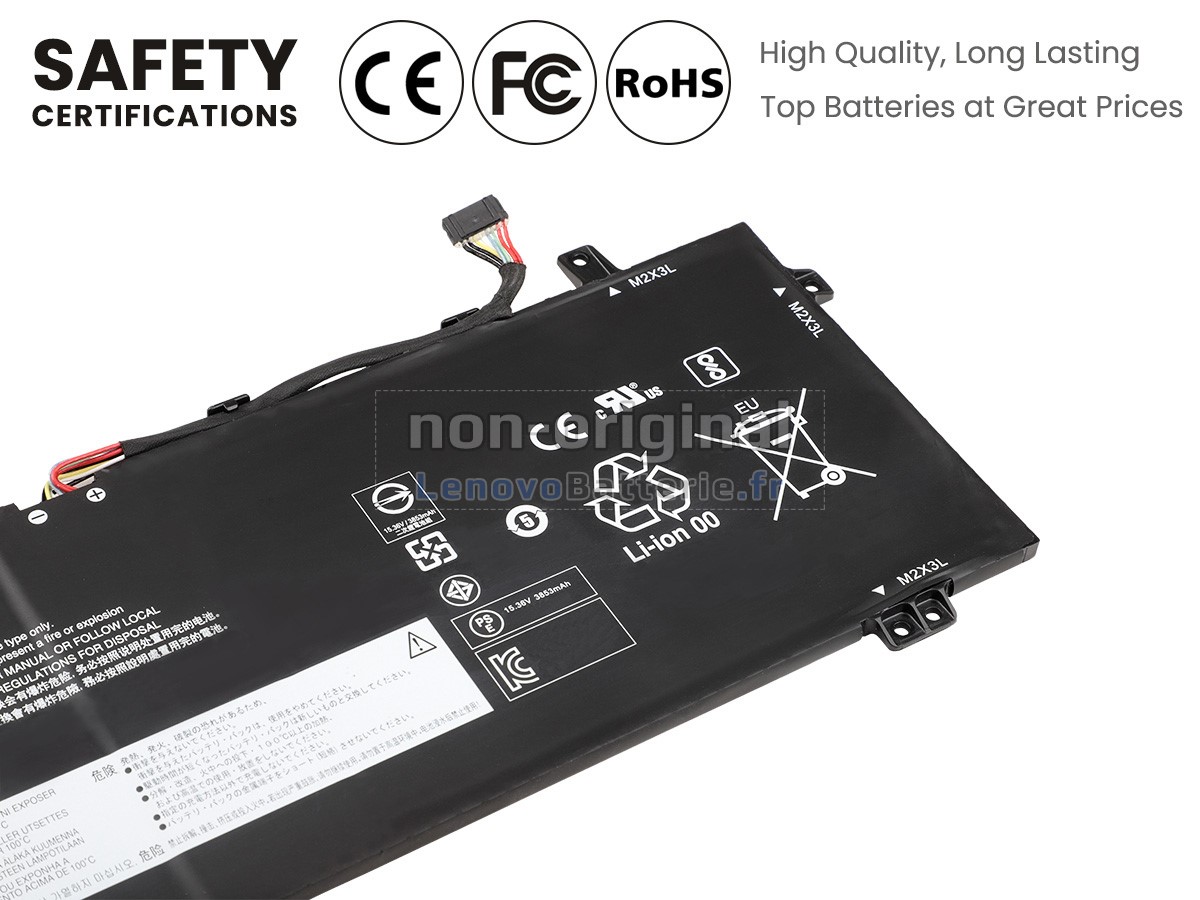 Toutes les batteries Lenovo L19M4PG0 sont certifiées par NF, CE et UL, et elles sont conformes aux normes françaises et européennes. De plus, elles sont contrôlées avec une série de tests rigoureux avant la sortie d'usine, pour garantir votre sécurité !