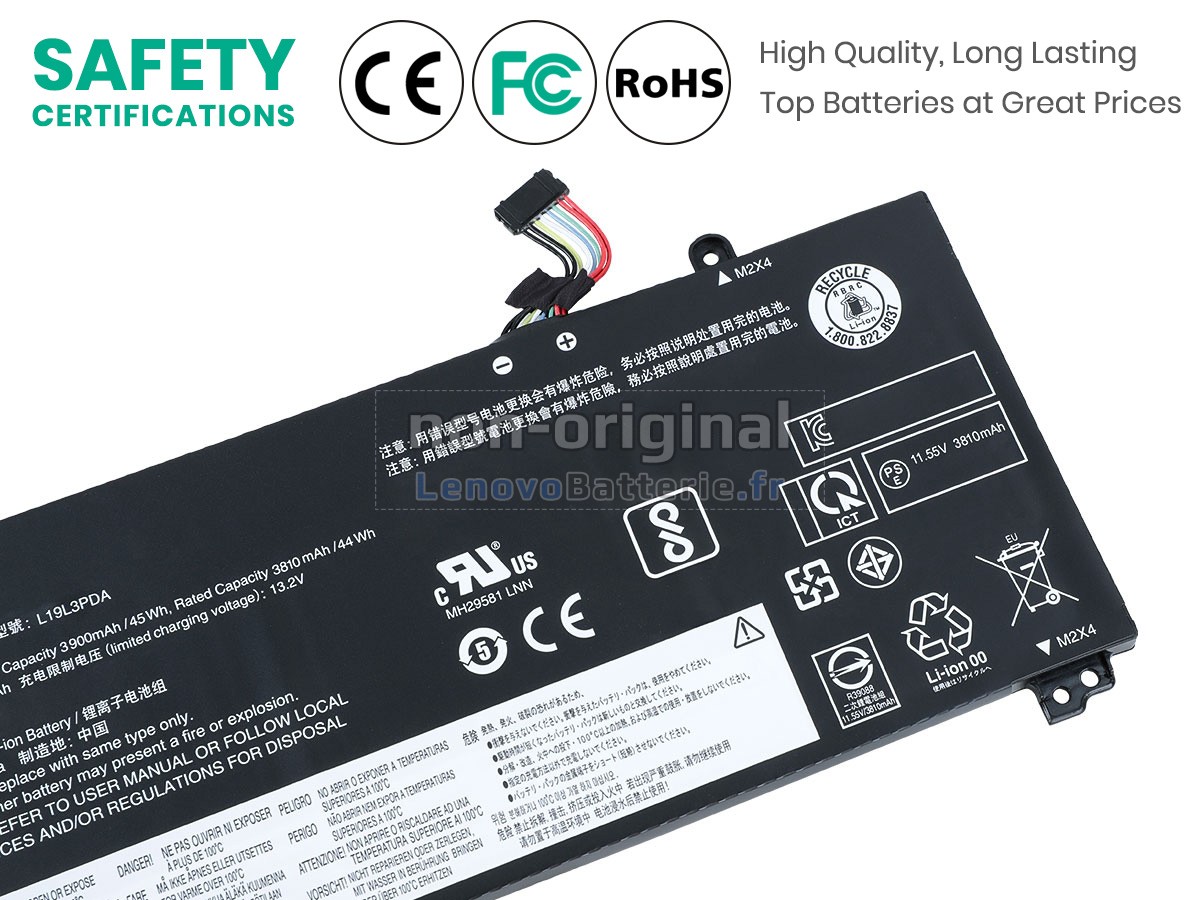 Chaque batterie pour PC portable Lenovo THINKBOOK 15 G2 ITL-20VE0008BM est équipée des cellules au lithium-ion de qualité A+ de Samsung, Panasonic et LG, d'une carte de circuit imprimé intelligente avec puce et d'un boîtier ABS+PC écologique, résistant aux températures élevées et à l'usure. Ce qui garantit des performances à la fois la sécurité.