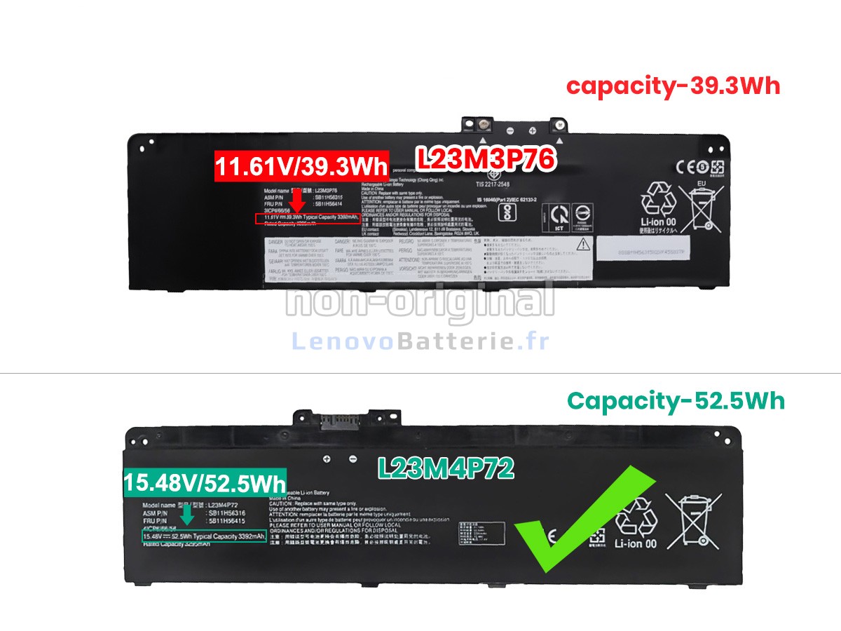 The L23M3P76 and L23M4P72 have different voltages and capacities and are not compatible.