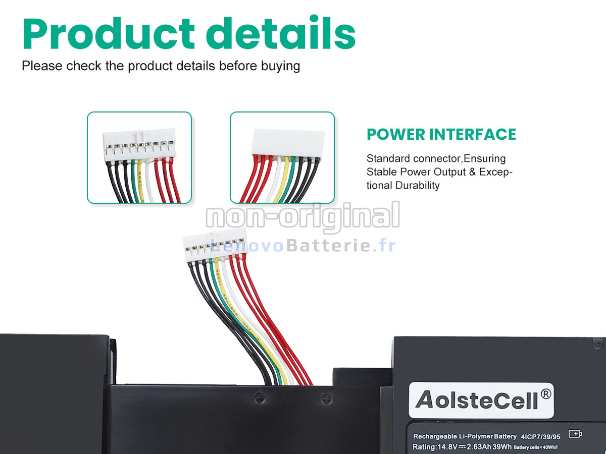 2Comparez la tension et la capacité de votre batterie avec notre batterie ThinkPad X1 2011 TP00025A, et vérifiez que le connecteur et la forme de la batterie sont identiques à ceux illustrés sur notre site web.