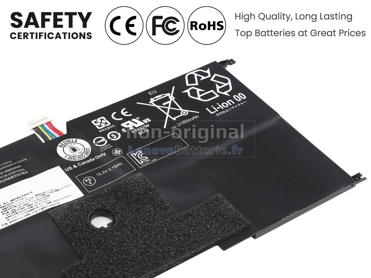 Toutes les batteries Lenovo ThinkPad X1 CARBON (3RD GEN)-20BT005R++ sont certifiées par NF, CE et UL, et elles sont conformes aux normes françaises et européennes. De plus, elles sont contrôlées avec une série de tests rigoureux avant la sortie d'usine, pour garantir votre sécurité !