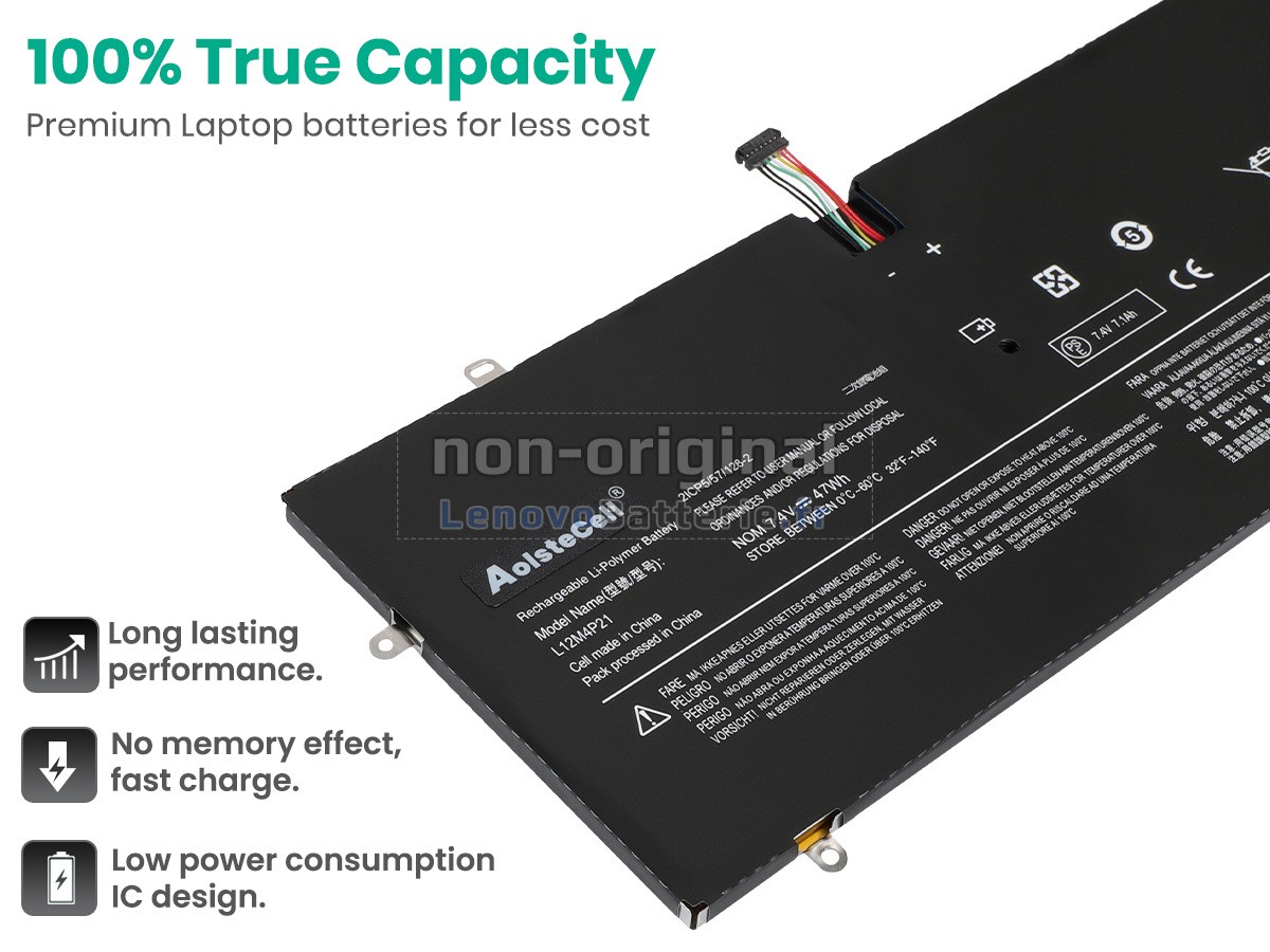 Chaque batterie pour PC portable Lenovo YOGA 2 PRO-80AY est équipée des cellules au lithium-ion de qualité A+ de Samsung, Panasonic et LG, d'une carte de circuit imprimé intelligente avec puce et d'un boîtier ABS+PC écologique, résistant aux températures élevées et à l'usure. Ce qui garantit des performances à la fois la sécurité.