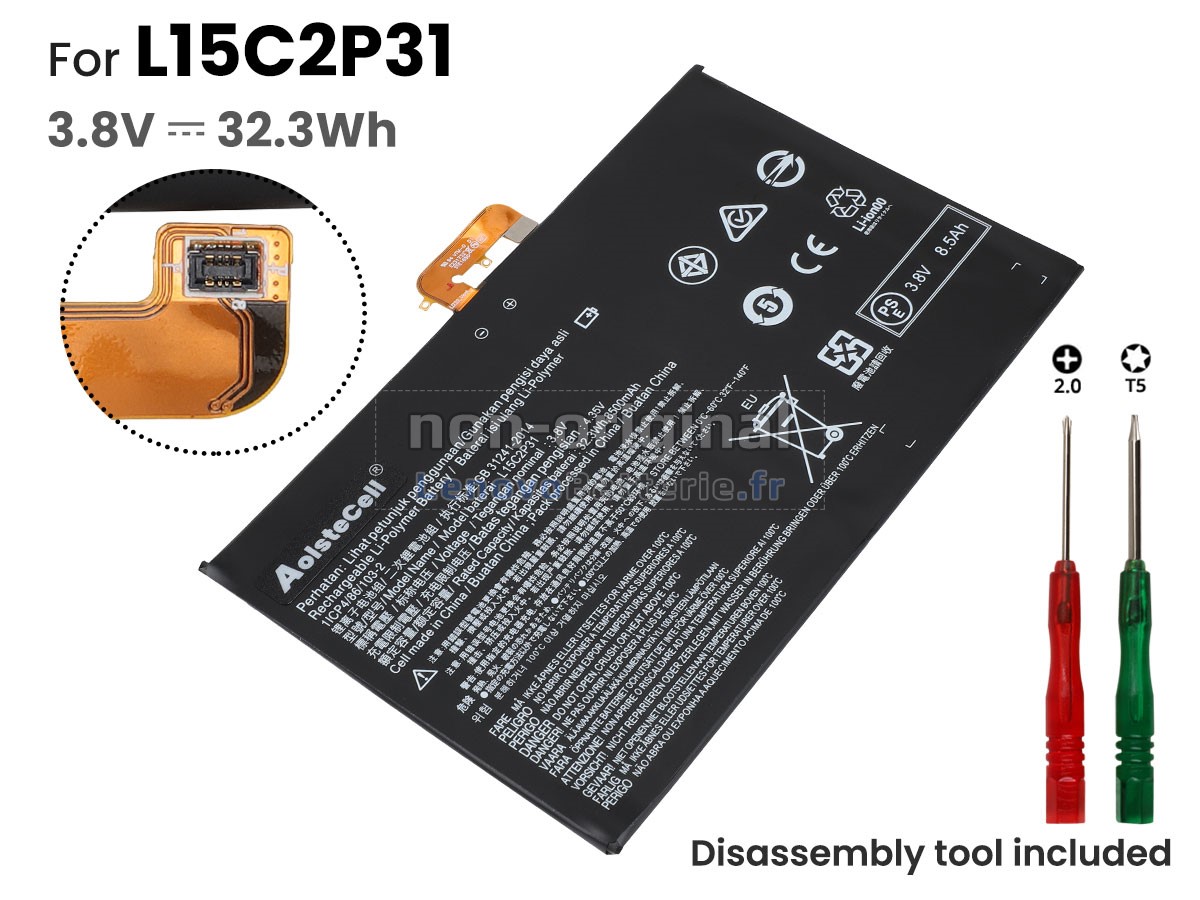 2Comparez la tension et la capacité de votre batterie avec notre batterie YOGA BOOK YB1-X91X, et vérifiez que le connecteur et la forme de la batterie sont identiques à ceux illustrés sur notre site web.