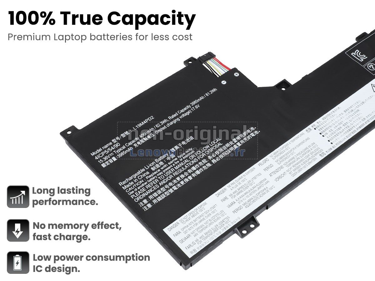 Toutes les batteries vendues sur LenovoBatterie.fr sont de nouvelles batteries de rechange, au lieu des batteries originales. En fait, nous utilisons les cellules et les puces intelligentes d'origine de la grande marque pour fabriquer les batteries de rechange, qui ont presque les mêmes performances, voire meilleures que les batteries d'origine. Comme ça, les primes de la marque seront supprimées mais sans compromettre la qualité. En outre, les batteries Lenovo YOGA S740-14IIL-81RS006JIV d'origine sont faites de différents accessoires de tiers, uniquement avec un logo de marque. Sur LenovoBatterie.fr, vous pouvez obtenir des batteries avec meilleur rapport qualité-prix !