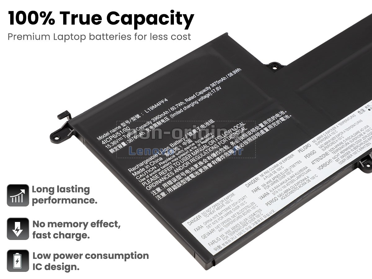 Toutes les batteries vendues sur LenovoBatterie.fr sont de nouvelles batteries de rechange, au lieu des batteries originales. En fait, nous utilisons les cellules et les puces intelligentes d'origine de la grande marque pour fabriquer les batteries de rechange, qui ont presque les mêmes performances, voire meilleures que les batteries d'origine. Comme ça, les primes de la marque seront supprimées mais sans compromettre la qualité. En outre, les batteries Lenovo YOGA SLIM 7 14IIL05-82A1008HAD d'origine sont faites de différents accessoires de tiers, uniquement avec un logo de marque. Sur LenovoBatterie.fr, vous pouvez obtenir des batteries avec meilleur rapport qualité-prix !
